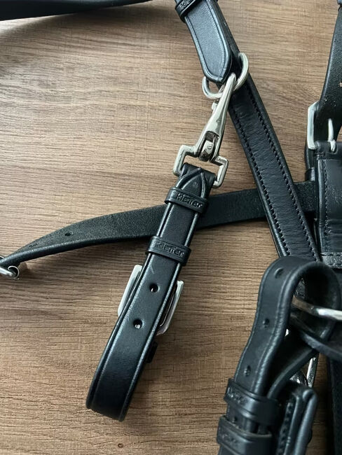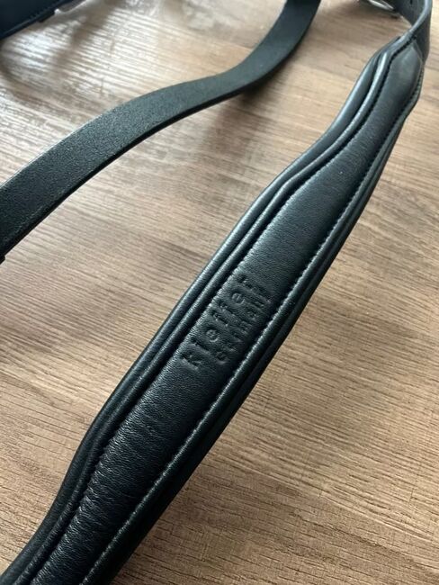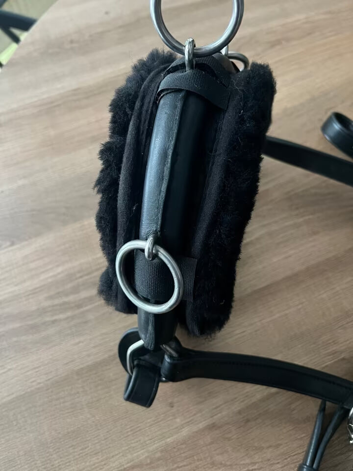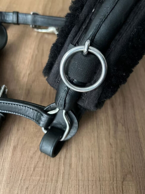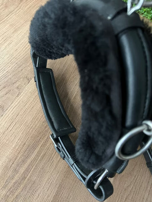 Wenig gebraucht, sehr guter Zustand. Der Kappzaum wurde am Nasenteil von mir mit einem passgenauen Echtlammfellschoner unterlegt, dieser ist im Preis enthalten. Das Lammfell kann aber mittels Klett entfernt werden. Der Zaum liegt sehr gut am Pferdekopf und ist sehr weich. Der Original-Stirnriemen ist neu und unbenutzt und ebenfalls dabei, dieser ist nur nicht montiert, siehe Extrafoto.