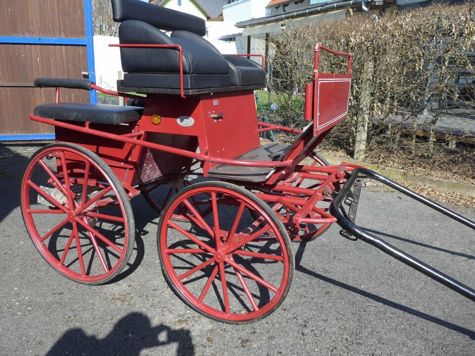 Verkaufe wegen Tod unseres Wallach unseren heiß geliebten Kühnle Marathon-Wagen. Unser Wallach hatte ein Stockmaß von 170 cm; für ihn war die Kutsche, hinsichtlich seiner Größe, etwas grenzwertig (siehe Foto); dies hat uns aber nicht gestört, da wir reine Freizeitfahrer sind und nur gemütlich im Gelände unterwegs waren.
