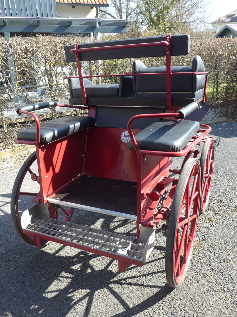 Der Wagen ist ein Oldimer, sehr gut für historische Ausfahrten geeignet, auch wenn man mal etwas sportlicher unterwegs sein möchte. Er kann Ein-oder Zweispännig gefahren werden. Gabel und Zweispännerdeichsel sind im Preis inbegriffen.