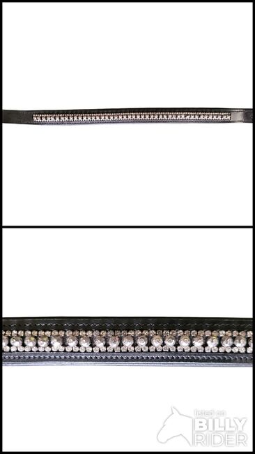Leder-Stirnband, Stirnriemen mit Glitzersteinen für Pferde, 40 cm, schwarz (4 Horse)