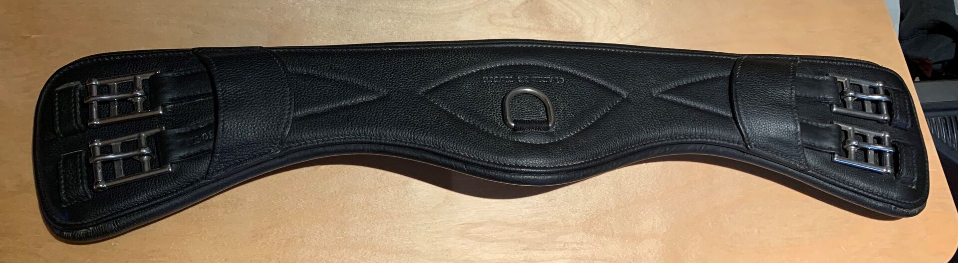 Anatomisch geschwungene Form mit Ellenbogenfreiheit, ideal für Pferde bei denen der Sattel zum nach vorne Rutschen neigt und Pferde mit tiefem Bauchansatz. Gefertigt aus aufwändig bearbeitetem Leder und dadurch einmalig weich und anschmiegsam. Durch die breite, anatomische Auflagefläche mit beidseitigen Elastikeinsätzen wird Druck optimal verteilt. Mit drei D-Ringen und Edelstahl-Rollschnallen. Extra weiches Echtleder