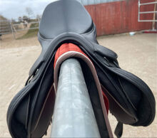 Der Sattel ist leicht und man sitzt sehr gut drinnen. Für einen Springsattel ist dieser sehr bequem!