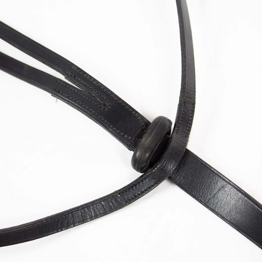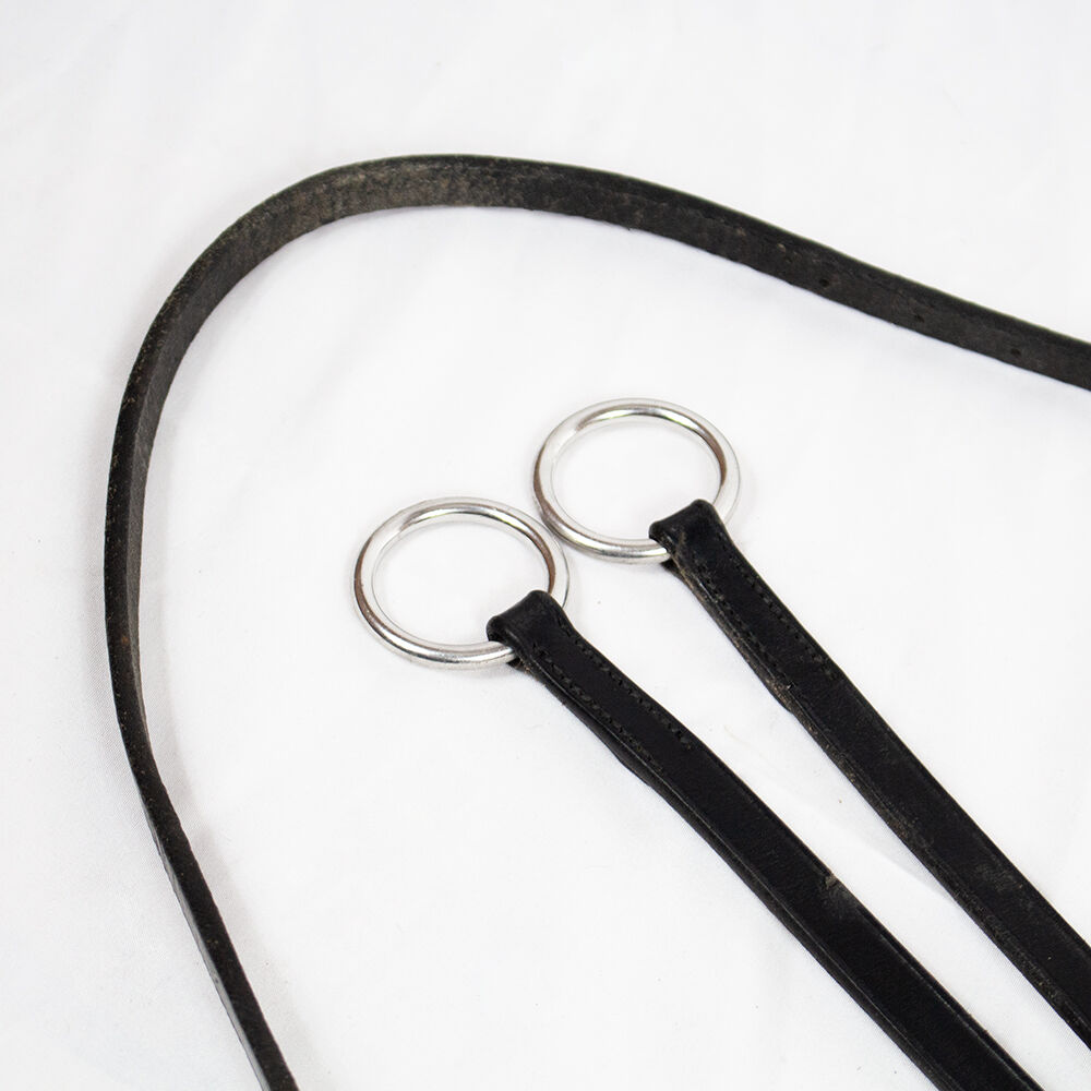 Das Loesdau Martingal ist perfekt zum Springen oder Geländetraining und sehr hochwertig gearbeitet. Es ist am Hals einfach verstellbar. Das Martingal verhindert ein Wegdrücken im Hals und Rücken. Es wird einfach am Sattelgurt verschallt und kann somit nicht verrutschen. Das Martingal hat Gebrauchsspuren und das Leder ist an manchen Stellen angeraut. Es hat Größe Pony.