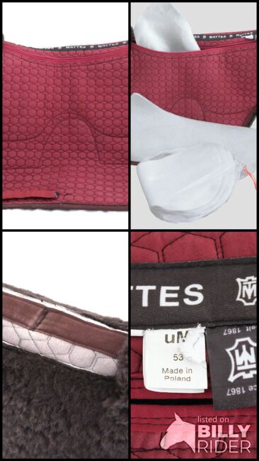 Ich verkaufe meine Mattes Lammfellschabracke in der Grösse uM 53 cm. Mein Warmblüter hat das getragen und die Grösse fällt eigentlich auf WB aus. Sie kommt mit Korrektureinlagen (je 3 pro Seite). Sie ist in einem sehr guten und gepflegten Zustand und hat keinerlei Schäden. Das Fell ist weich und gut gebürstet (nicht verfilzt). Kaufpreis war 360 CHF. Preis ist verhandelbar.