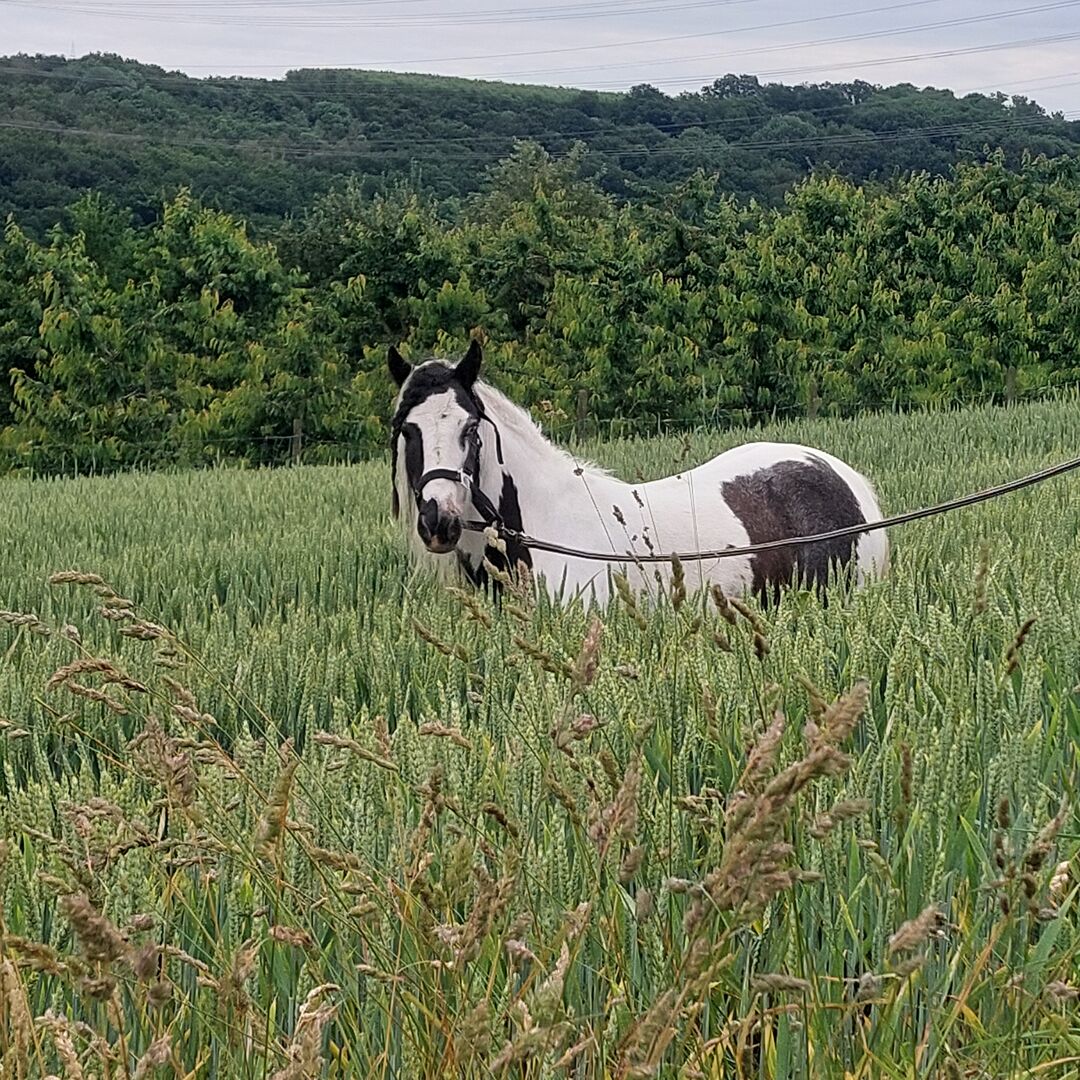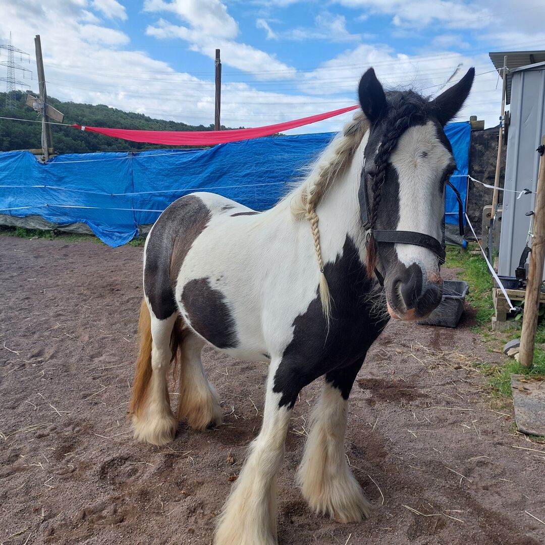 Zum Verkauf steht diese süße Mini Tinker Stute 2018 geboren. Lexi ist 6 Jahre jung Stockmaß ca.130 cm, hat ein blaues und dunkeles Auge.Am Anfang ist sie etwas schüchtern und Misstrauisch, aber das legt sich wenn man sich mit ihr beschäftigt und Gefühvoll mit ihr umgeht. Sie lässt sich brav putzen, Hufe gibt sie auch ,( Hufe wurden vor kurzem gemacht.) Duschen kennt sie auch , longieren kennt sie in alle 3 Gangarten, derzeit wird sie angeritten. Die Maus lernt so schnell das man sie mittlerweile frei in der Halle ,im Schritt, Trab und Galopp reiten kann. Rechte Hand liegt ihr derzeit noch nicht so, aber das ist Training Sache. Im Gelände beim spazieren gehen zeigt sie sich völlig entspannt. Hunde ,Traktoren, Autos sind kein Problem.Lexi kennt Boxenhaltung und Offenstall ist mega sozial und herdeverträglich. Wurde im Mai entwurmt .Preis ist Verhandelbar, Wird ohne Zubehör verkauft...Ich würde mich von Herzen freuen für sie ein Fürimmerzuhause zu finden .