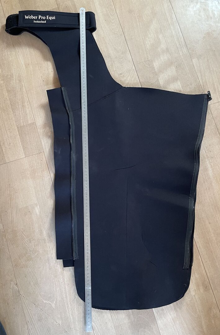 - gebraucht, aber voll funktionsfähig - ideal für die Stallarbeit und Ausritte im Winter - sehr warm, auch bei Nässe - gesamte Beinlänge bedeckt - mit Reissverschluss an der Außenseite - seltene Größe für schlanke, kleine Frauen oder Jugendliche - (das Lineal ist 100 cm lang)
