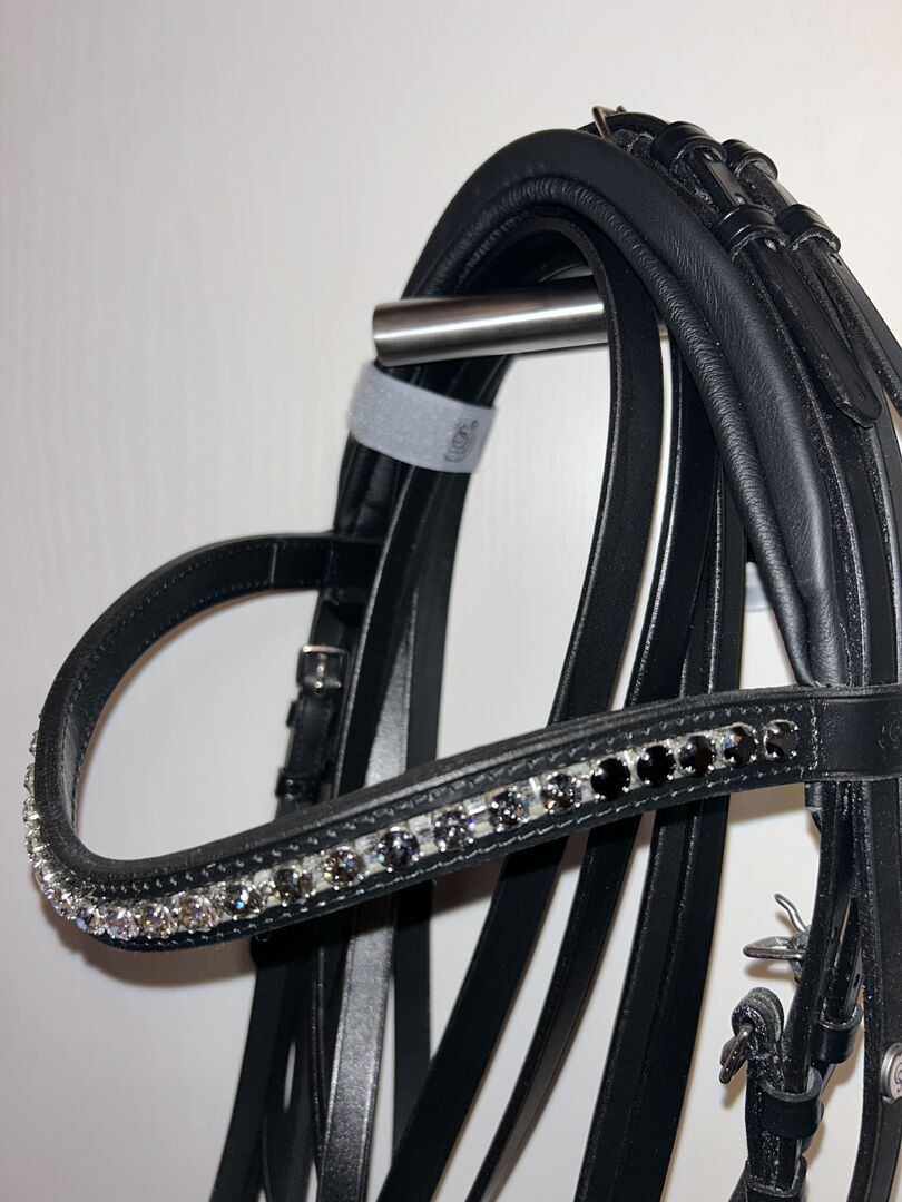 Neue Schumacher Kandare Warendorf schwarz, weiß unterlegt