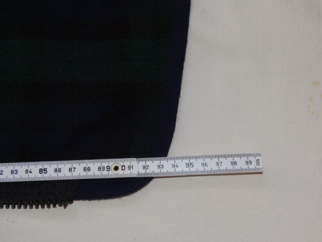 Passen leider nicht, da sie keine Maße beim Kauf hatte. Dann lagen sie rum und waren mit auf einem Flohmarkt, da haben sie wohl die ausgebleichte Stelle bekommen (siehe Foto), ist ihr vorher nicht aufgefallen.