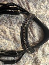 Der Nasenriemen hat einen tollen Lack und am Stirnriemen sind schöne Strasssteine .