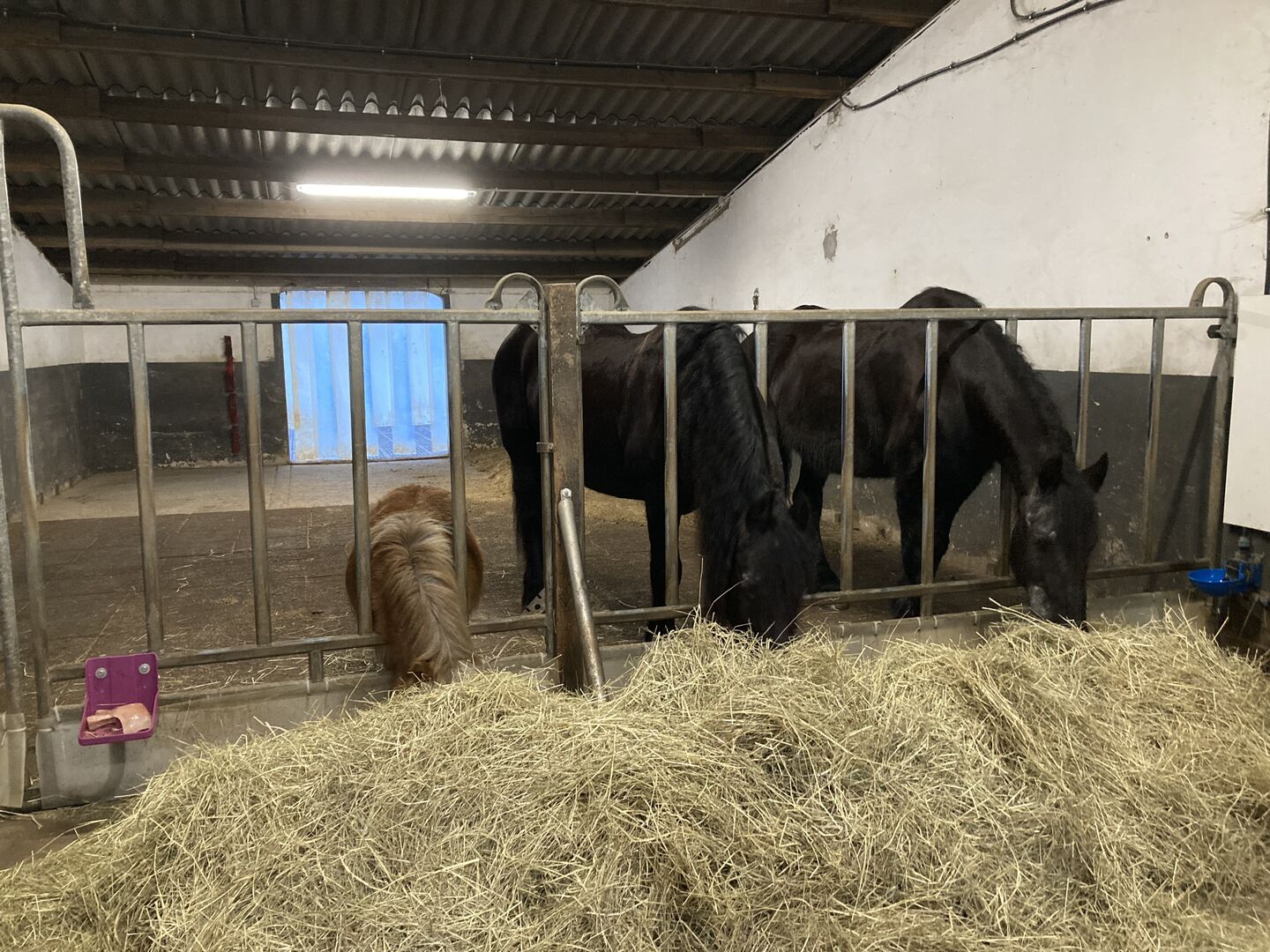 Wir bieten im Sommer ganztägig Weidegang mit freiem Zugang über den Paddock ( mit ECO Raster befestigt) zum Stall. Der Stallbereich ist mit Gummimatten ausgelegt. Im Winter füttern wir 24/7 gutes Heu. Die Selbsttränken sind beheizt und die Pferde können sich im Stall und auf dem Paddock frei bewegen. Die Eingewöhnung in die Gruppe kann nur in der Weidesaison stattfinden. Unsere kleine Herde besteht aus zwei 22jährigen und einem 13jährigen Wallach und einer Minishetty Stute.