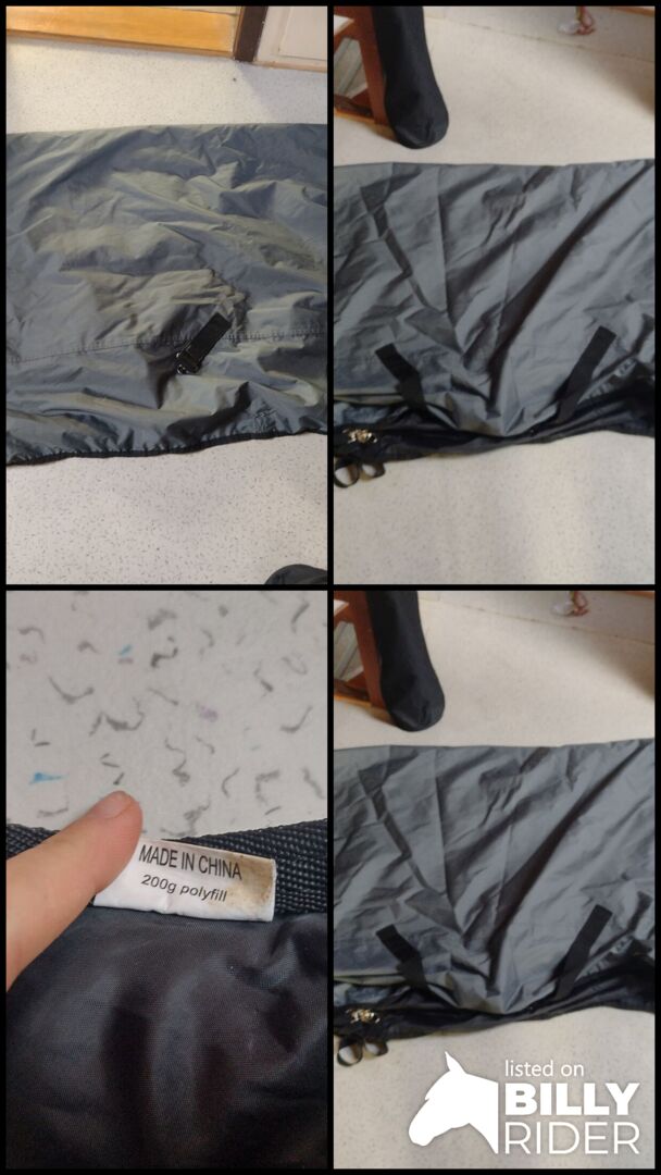 Größe 165cm, 200g Füllung. Glattes, fellfreundliches Innenfutter, großzügiger Schweiflatz, Kreuzbegurtung und Beinschnüre.