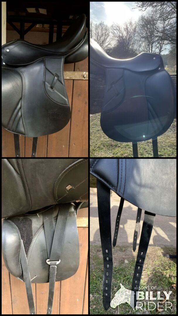 Der Sattel ist leider oben am Sattelkranz etwas abgescharbt und hat eine kleine Macke (s. Fotos), daher unter Wert abzugeben. Kein Unfall, sondern er wurde leider verkehrt aufgehängt und ist an eine scharfe Kante gestoßen.