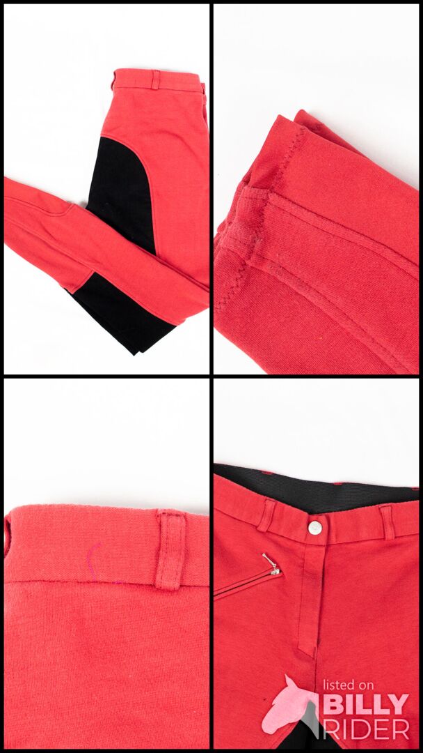 Eine schöne und schlichte Pfiff Vollbesatz-Damenreithose in rot. Die Hose besteht aus 95% Baumwolle und 5% Elasthan. Sie hat Größe 36 und eine Tasche mit Reißverschluss an der Vorderseite. Sie hat einen schwarzen Kunstleder-Vollbesatz der für einen schönen Kontrast schafft. Sie hat flexible Beinabschlüsse. Die Reithose ist in einem sehr guten Zustand. Zum Angebot des Anbieterslaunch