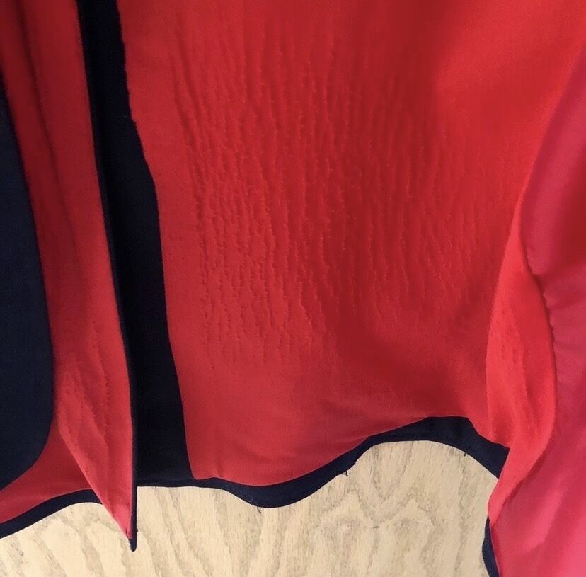 Es ist aus einem festeren Stoff (kein billiges Polyester) und befindet sich in einem sehr guten Zustand, ohne Löcher und ohne Flecken, nur ein bisschen Pilling am Innenstoff!