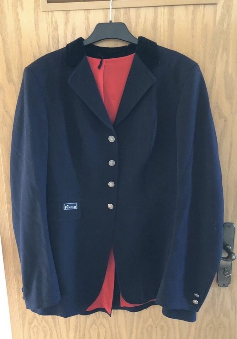 Ebenso steht dieses Pikeur-Turnierjackett in Größe 84L / 42 lang, in Blau zum Verkauf!