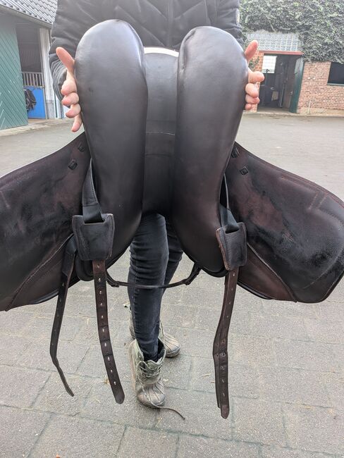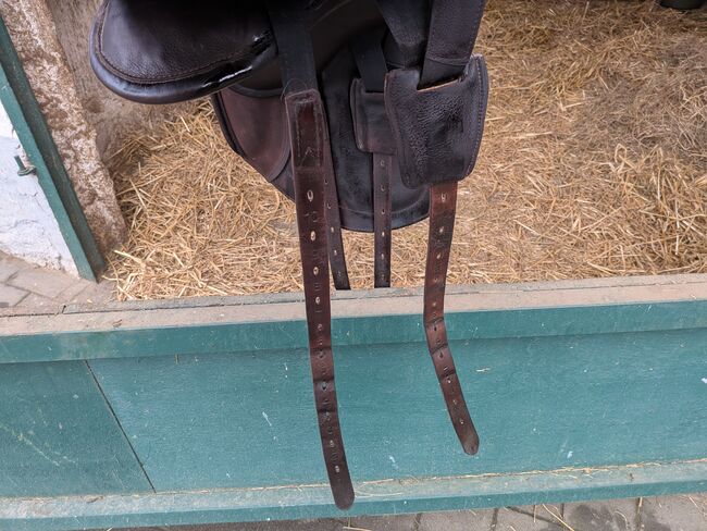 Verkaufe meinen neuwertigen Prestige Atena EVO HP in der Farbe Tabacco inklusive Steigbügelriemen (original Prestige) und Schoner. Der Sattel wurde von mir am 22.10.2022 gekauft und ist somit 3 Jahre alt. Es ist ein sehr bequemer Sattel zum Ausreiten aber eigener sich auch für die Arbeit am Platz. Eingestanzt ist die Größe 17 und die Kammerweite 33 (siehe Bild)