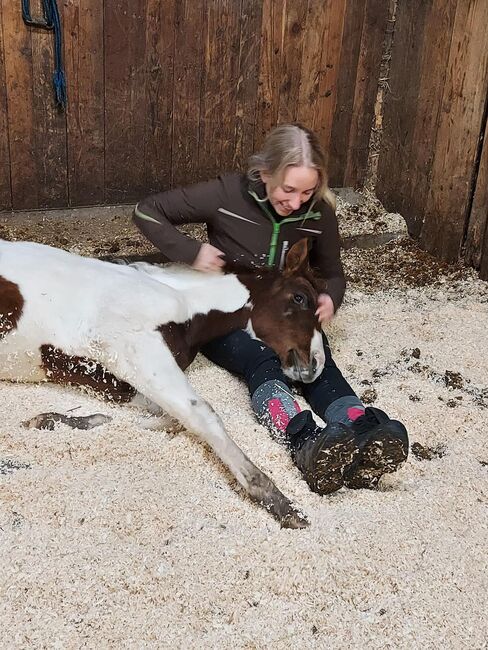 Hallo, ich bin Chabchab! Ich bin ein noch kleiner, süßer Hengst und lebe derzeit bei meiner Mama in einer gemischten Gruppe im Offenstall. Ich bin eine richtig coole Socke, total verschmust, kenne das Fohlen-ABC und bin selbstverständlich auch schon halfterführig.