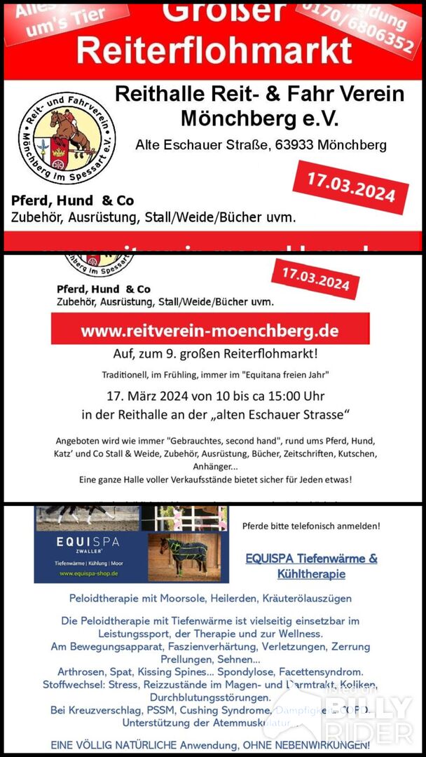 Auf, zum 9. großen Reiterflohmarkt! Traditionell, im Frühling, immer im "Equitana freien Jahr" 17. März 2024 von 10 bis ca 15:00 Uhr in der Reithalle an der „alten Eschauer Strasse“