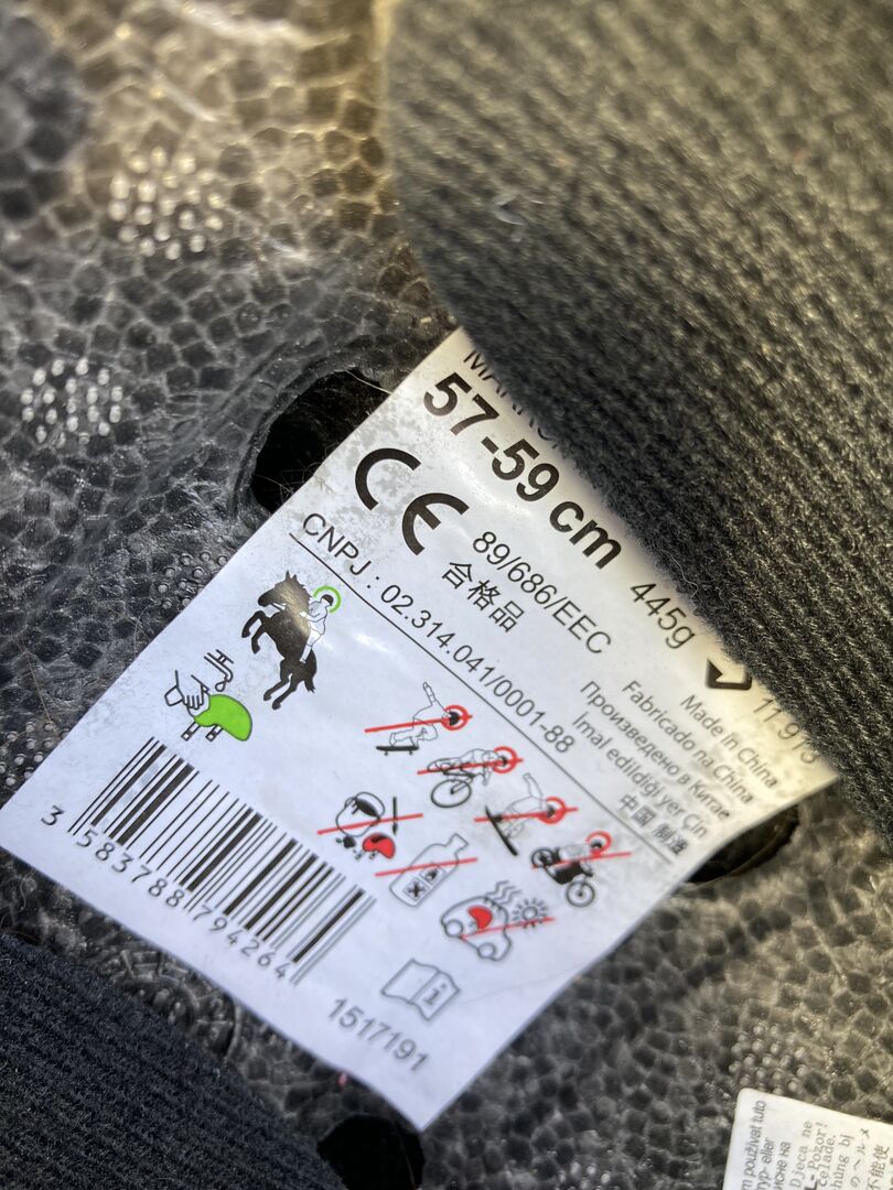 Der Reithelm ist braun und fast nicht benutzt. Die Größe beträgt M (57-59cm).
