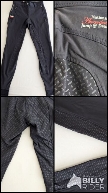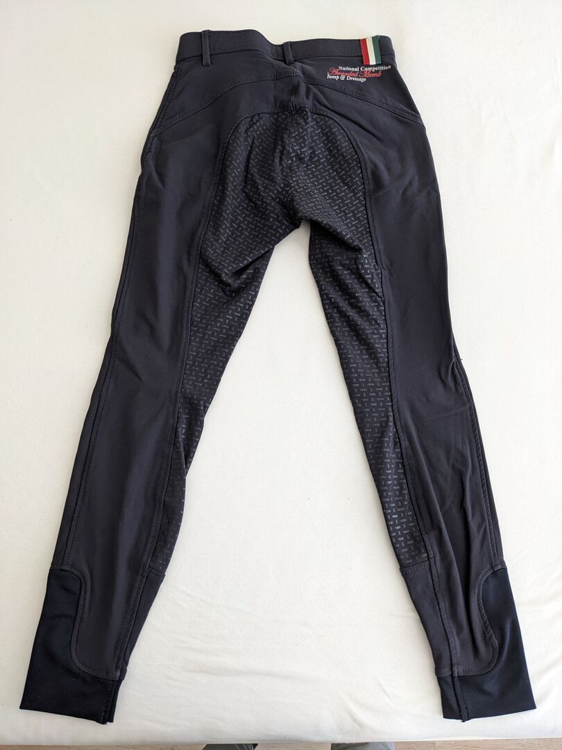 Benutzt und gut erhaltene dunkelblaue Reithose, Zustand siehe auch Fotos. Privatverkauf ohne Rücknahme und Gewährleistung, bei Versand zuzüglich Versandkosten. Nichtraucherhaushalt.