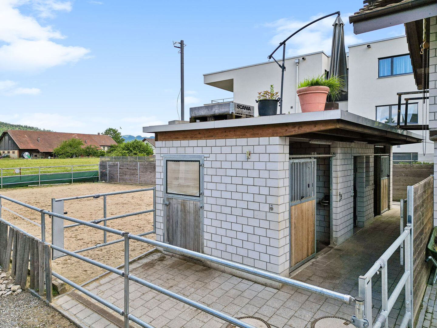 Der neuwertige Stall mit Baujahr 2021 verfügt über zwei grosszügige Auslaufboxen und eine Sattelkammer, welche auch als Futterraum genutzt wird. Die Boxen mit den direkten Ausläufen und ebenfalls direktem Zugang zu dem Sandplatz, können beliebig geöffnet werden. Die Boxenböden sind zudem mit Gummimatten ausgelegt, die sowohl Komfort als auch Sicherheit bieten. Der integrierte Heuautomat lässt sich mit einer individuellen Menge befüllen. Mittels einer Zeitschaltung, werde Ihre Pferde über den ganzen Tag automatisch gefüttert.