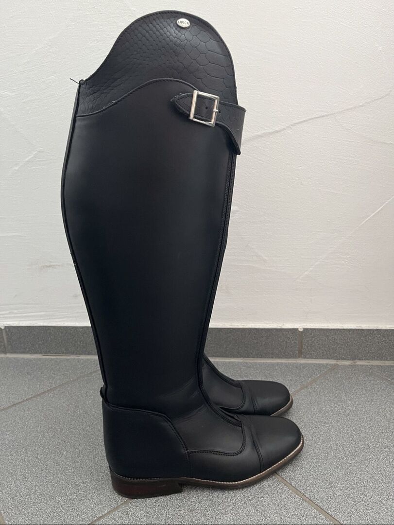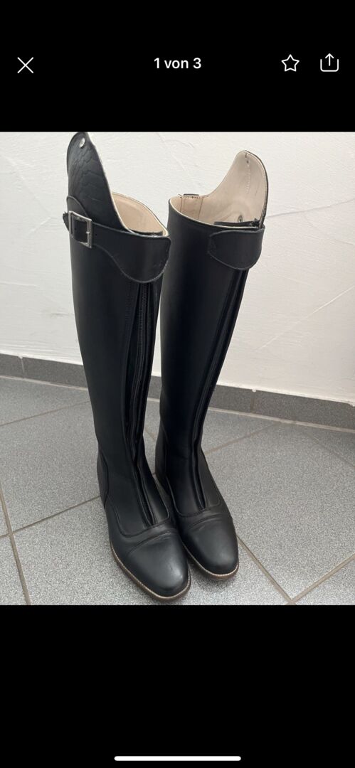 Ich verkaufe hier meine Maßstiefel da sie mir nach zwei Schwangerschaften leider nicht mehr passen. Sie wurden kaum benutzt und ich habe sie höchstens zweimal auf dem Pferd getragen. Neupreis lag bei 650