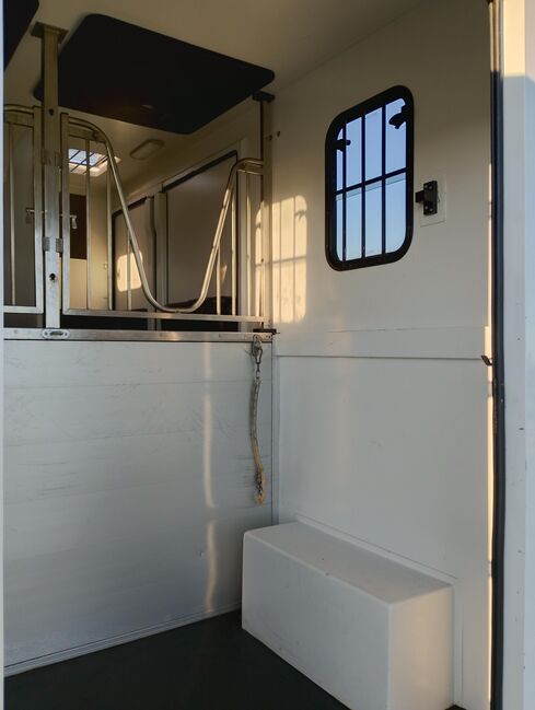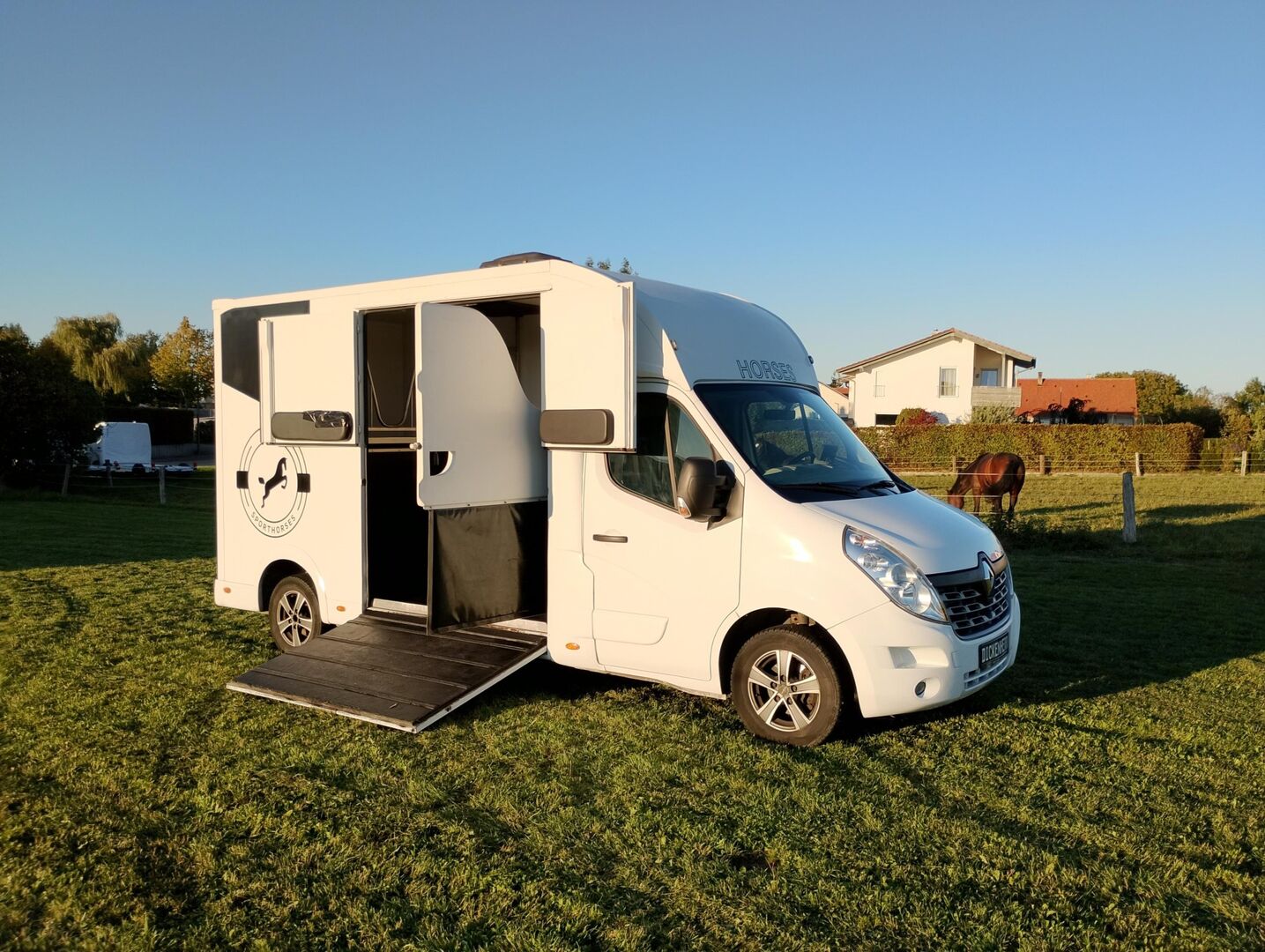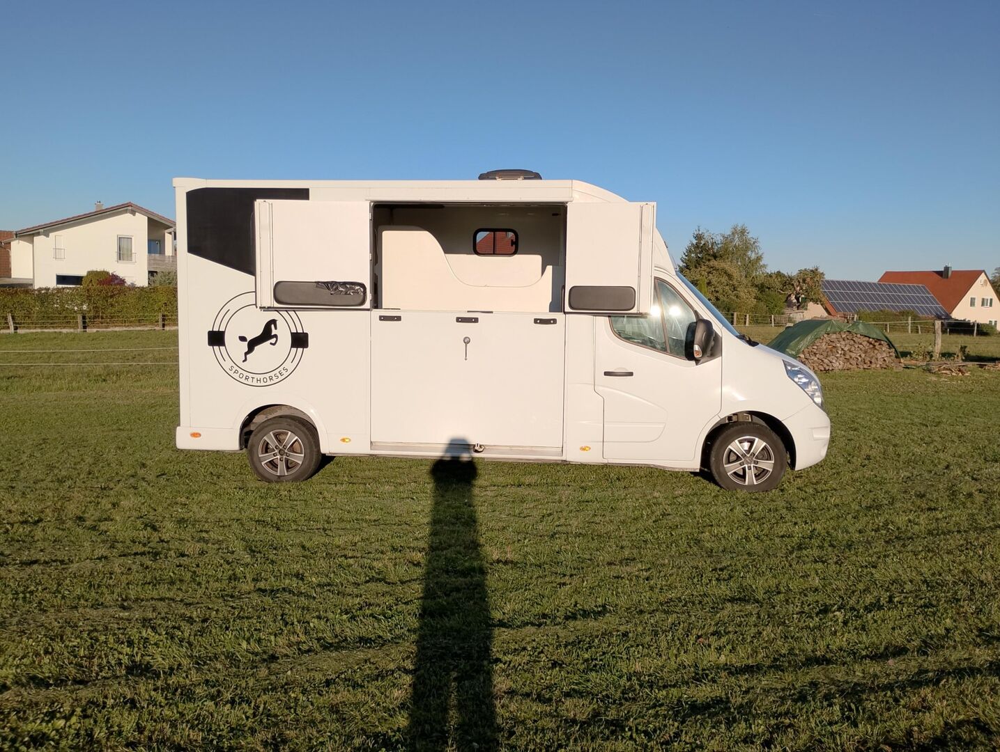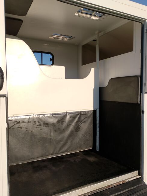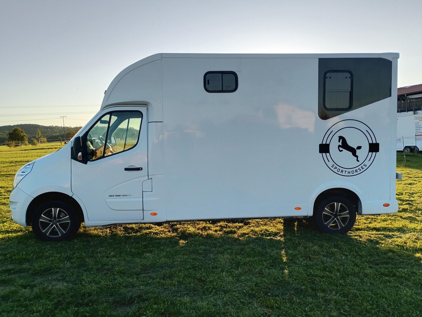 Pferdetransporter Renault Master Markenaufbau von der Firma Nuyts Erstzulassung 2015 Tüv Neu Schaltgetriebe Euro 5 Motor 80.000Kilometer 165 PS Tempomat Klima 3 Sitzplätze Radio mit Freisprechanlage Anhängerkupplung 2,5t Videoüberwachung im Pferdeabteil und Rückfahrkamera Stauraum im Dachspoiler Seitenrampe mit 2 Klappen darüber 2 Pferdestellplätze Versetzbarre Trennwand Kopfpolster an der Decke Lüfter Große Sattelkammer Hecktüre zur Sattelkammer Das Polster an der Seitenklappe wird erneuert Sofort Verfügbar Besichtigung nur nach Terminabsprache möglich Nettopreis 39.000EUR zzgl 19%Mwst Bruttopreis 46.410EUR Sofort Verfügbar Besichtigung nur nach Terminabsprache möglich Anfragen unter 01606106131-00491606106131