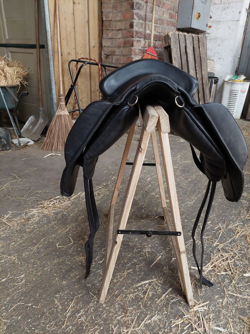 Zum Verkauf steht ein iberischer Sattel der Marke Ludomar, Modell Jerez MRS ohne vordere Galerie. Glattleder, Kissen aus Leder, Wollfüllung, flexibler Sattelbaum, weite W, sitzgröße 18