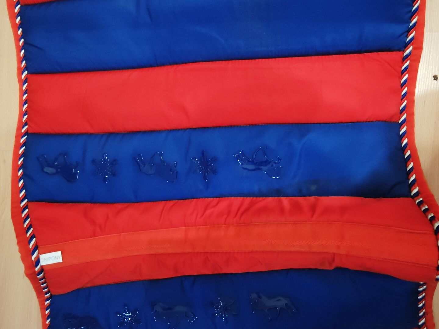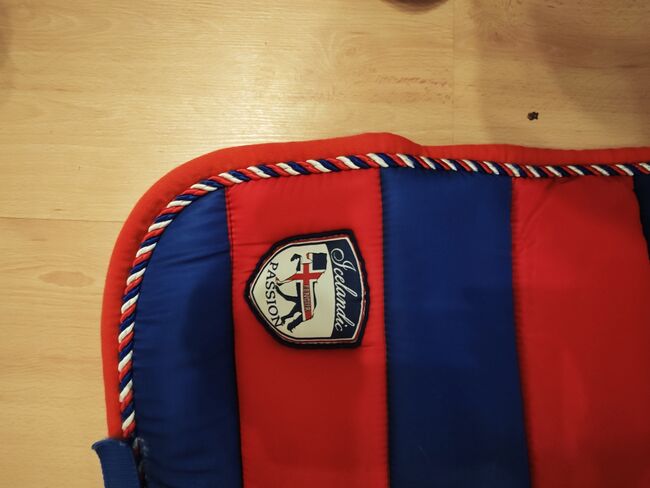 Icelandic Passion Fengur Quer gesteppt, zweifarbig, in Islandfarben Umfasst mit dreifarbiger Kordel weiß/rot/blau Sattel- und Gurtschlaufen mit Klettverschluss.