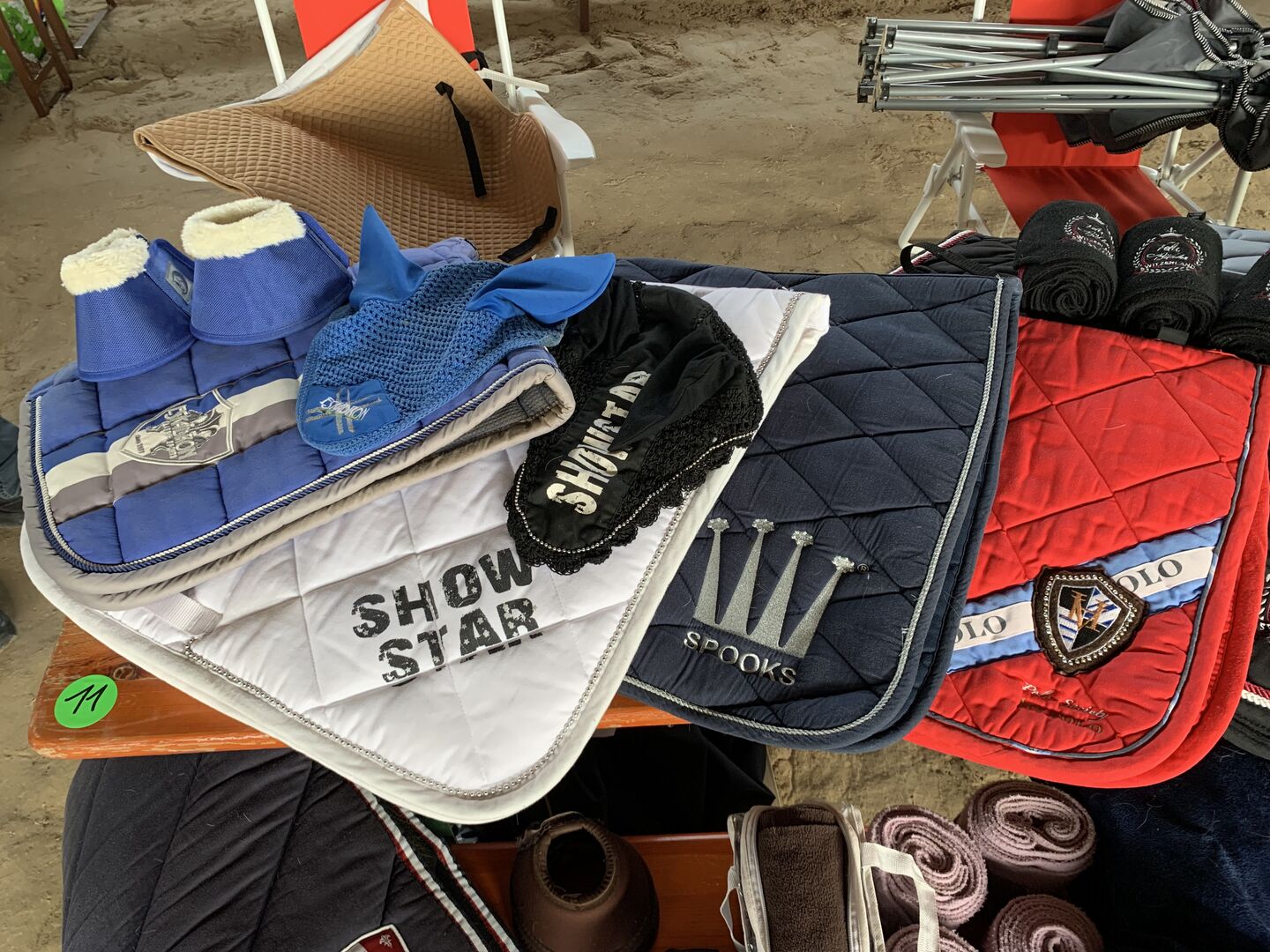 Schabracke, Bandagen, Abschwitzdecke, Trense, Halfter, Gamasche, Reithelm, Hufglocken, Vorderzeug, Sattelgurt