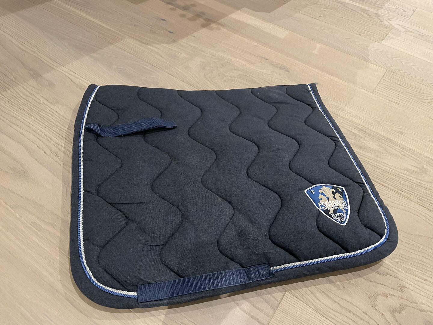 Selten benutzte Schabracke, frisch gewaschen, ohne Beschädigung, übliche Verfärbung vom Sattel an der Sattellage.