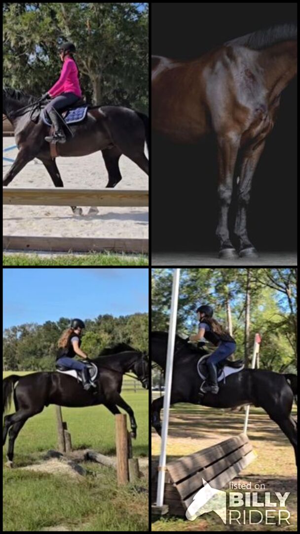 Schickes junges Warmblut-Investitionspferd! Dressur, H/J, oder Vielseitigkeit. Lord Ferragamo x Ferro x Formateur Earl Grey, auch bekannt als Early, ist ein 2019er schwarzbrauner Oldenburger Wallach mit einer Stockmaß von 16,2h, barfuß. Er gewann den 1. Platz bei der Jungpferdequalifikation 2020, war Reserve Champion bei den USDFBC 2021 Regional Finals mit 78,7% und 79% von beiden Richtern und zeigte 2023 eine Materiale-Dressur mit 76,2%. Er ist bereits in der Dressur ausgebildet, reitet im Gelände und hat mit dem Springen über Hindernisse begonnen. Er liebt XC-Schulungen und ist über Gräben, Bänke, Haufen, Baumstämme und vieles mehr gesprungen! Sein süßer Charakter, sein umwerfendes Aussehen und seine auffälligen Warmblutbewegungen machen ihn zu einem der beliebtesten Pferde im Stall. Er wurde langsam und korrekt erzogen, wobei der Schwerpunkt auf den Grundlagen und der langfristigen Gesundheit lag. Early ist ein Barhufer und ist auf dem neuesten Stand in Bezug auf Impfungen, Coggins, Entwurmung, Scheidenreinigung, Hufbearbeitung und Floating. Aktuelle Ankaufsuntersuchung und CLEAN Röntgenbilder (Vorderfüße, Sprunggelenke, Kniegelenke und Rücken)