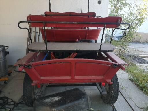 Stand immer abgedeckt unter Dach. Allerdings müssten an ihr Reperaturarbeiten durchgeführt werden, für die wir aktuell keine Zeit und Energie haben. Vorne im Fußbereich müssten z.B. neue Bretter rein, oder eine Metallplatte verbaut werden. Der Bereich hat unter der vielen Nutzung einfach gelitten. Außerdem möchten wir wieder auf ein leichteres kleineres Model umsteigen, da unsere Stute (162 Stockmaß) nicht mehr die jüngste ist. Daher würden wir auch gegen z. B. Gig gut gefedert und mit bremsen oder ähnliches tauschen.