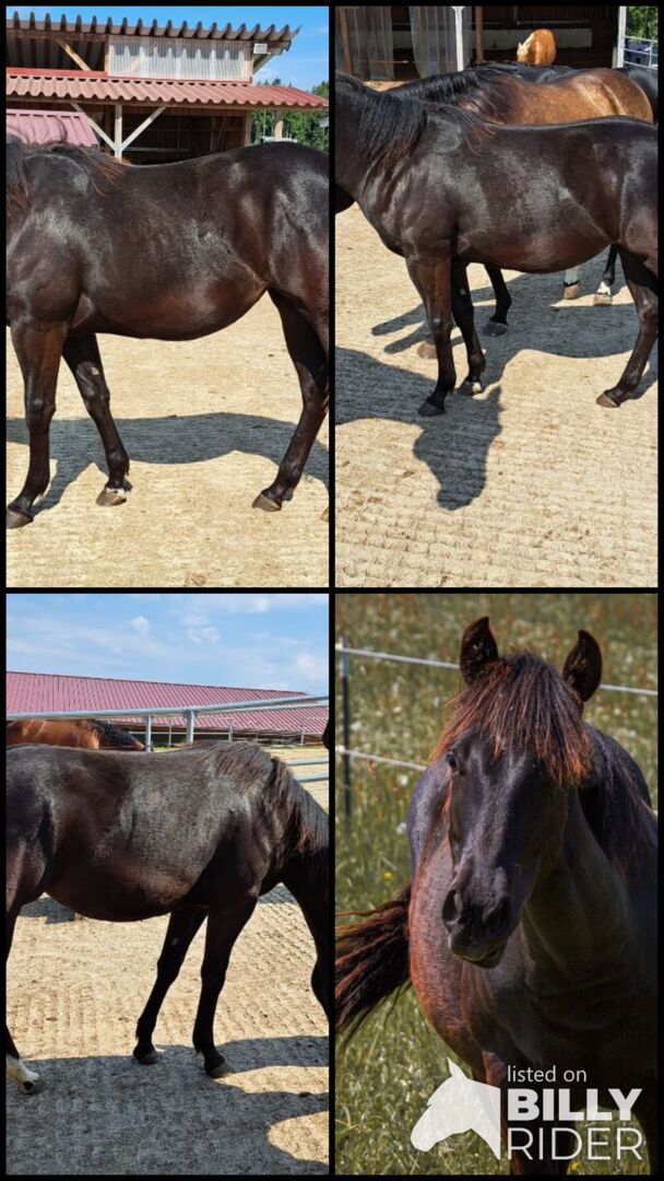 Ganz liebe, menschenbezogene Quarter Horse Stute in der tollen Farbe Black sucht ein liebevolles, förderndes Zuhause. Die Hübsche kommt direkt vom Züchter und ist 2022 geboren. Sie wird eher großrahmig und bekommt ein geschätztes Endmaß von 152 bis 154 cm. Luzi wächst artgerecht in einer kleinen Stutenherde auf. Bekommt hochwertiges Mineral- und Kraftfutter sowie 24/7 Heu und Wiese. Im Umgang ist sie brav, zutraulich und menschenbezogen. Kennt das Fohlen ABC sowie regelmäßige Hufbearbeitung. Luzi hat volle Papiere und eine gute Allround/Foundation Abstammung. Sie kann gerne zur Aufzucht bleiben. Luzi verspricht ein toller Partner für die Freizeitgestaltung zu werden.