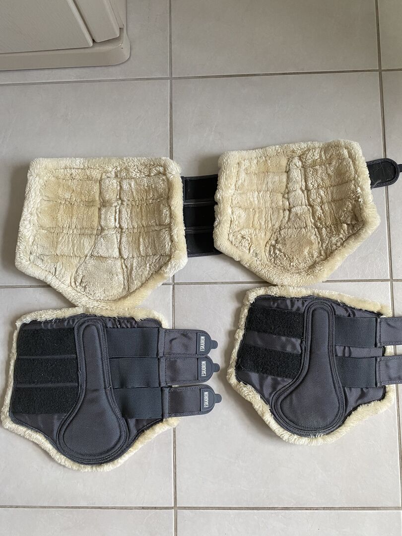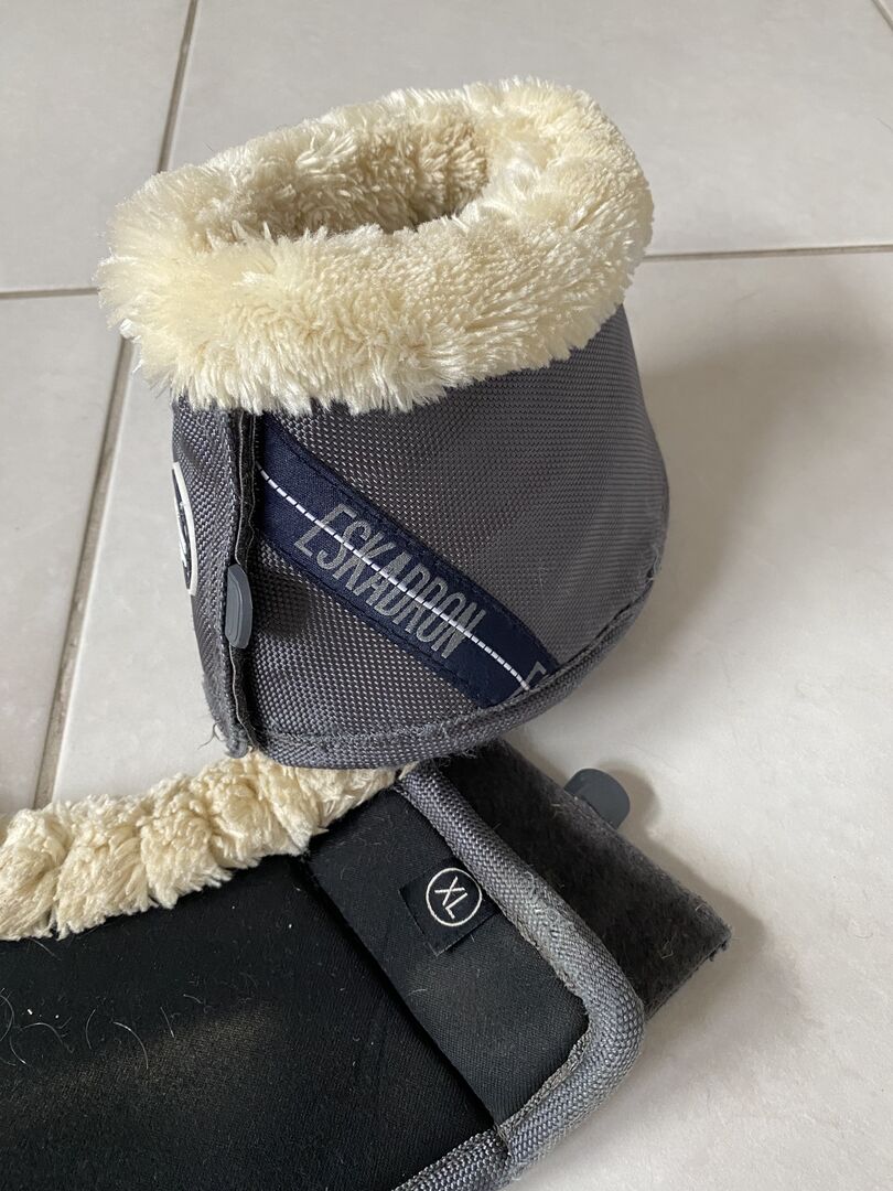 Ich biete ein 4 er Set an Eskadron Gamaschen (2x M für vorne und 2x L hinten) und ein paar passende Glocken in XL an. Die Gamaschen sind in top Zustand (s. Fotos) ebenso wie die Glocken. Bei einer Glocke ist die Naht ca. 2 cm offen.