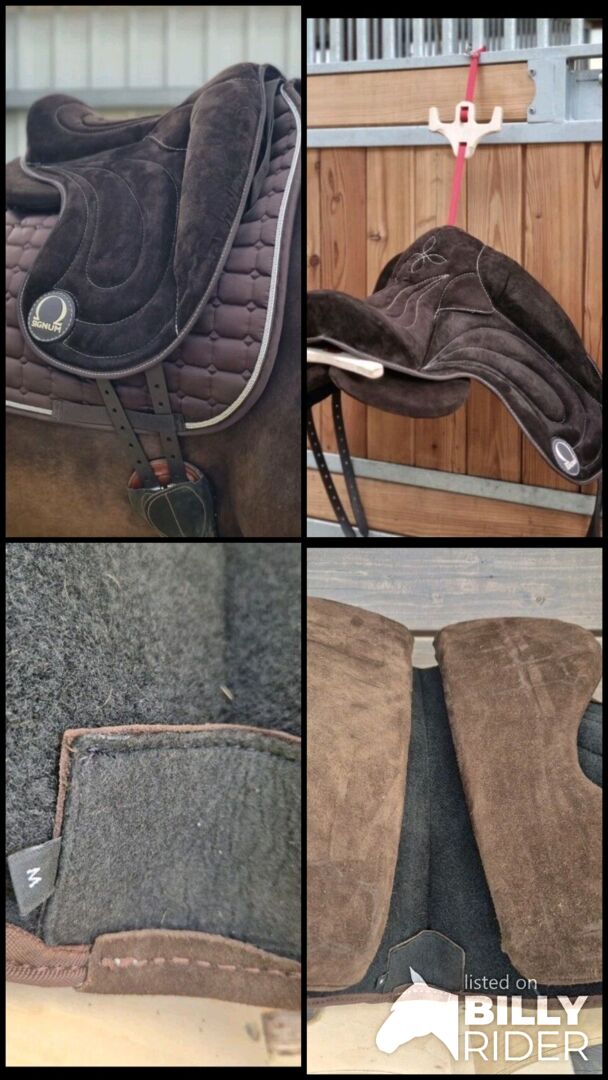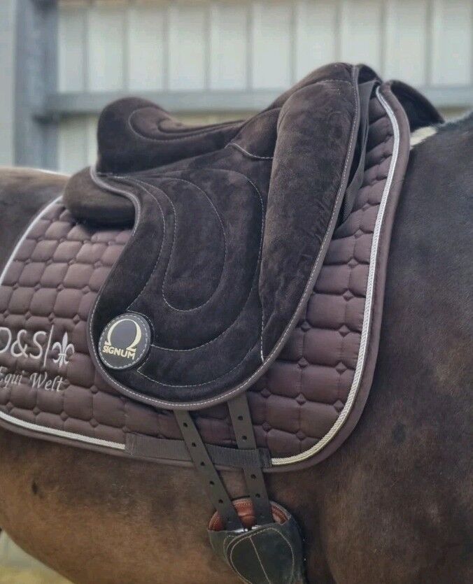 Zum Verkauf steht ein neuwertiger SIGNUM-Reitpad in Größe M in attraktiver brauner Wildlederoptik. Das Pad verfügt über eine verstellbare Kopfeisenbreite, die eine individuelle Anpassung an Ihr Pferd ermöglicht. Wie immer bei Signum, steht es für Qualität und Komfort. Es wurde nur angepasst und kurz anprobiert, aber leider ist es für meine Tochter zu groß. Das Pad wurde ordnungsgemäß gelagert und befindet sich in einem sehr guten Zustand.
