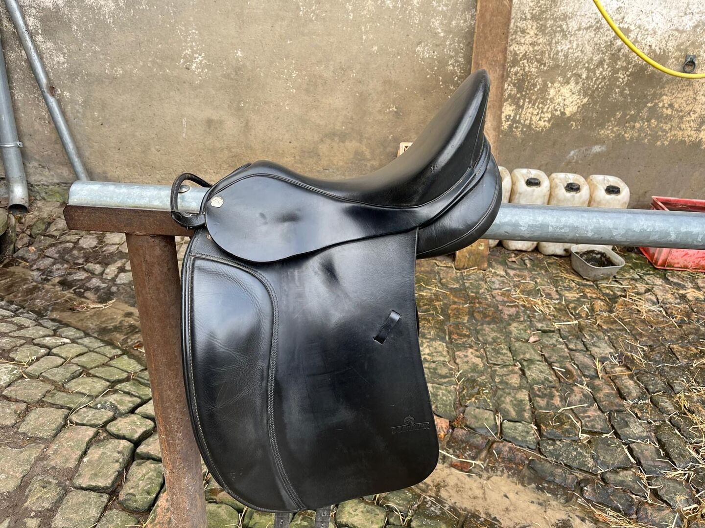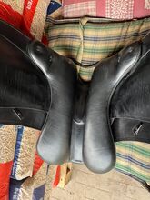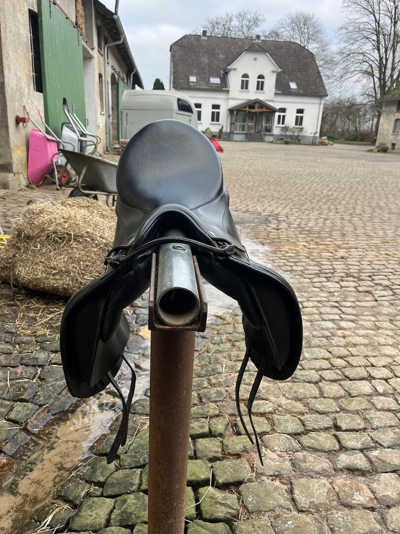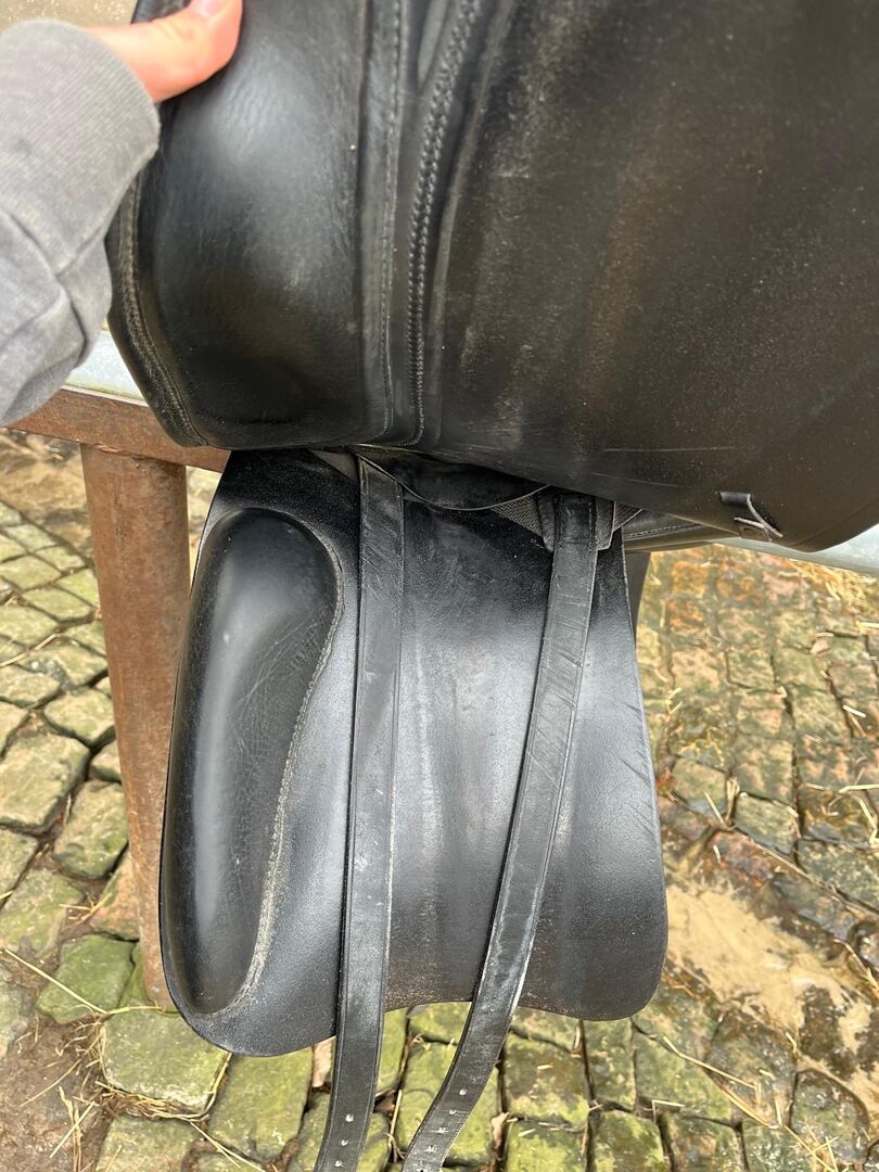 Kommt frisch vom Sattler (gepolstert, seit dem nicht mehr verwendet, da meine Tochter mit meinem Dressursattel besser zurecht kommt.