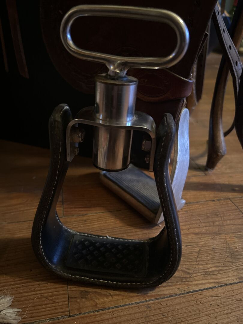 Diese Steigbügel sind vollstündig drehbar und haben eine Federung. Sie eignen sich besonders für Reiter:innen mit Knieproblemen. Sie sind für Fender konzipiert und mit Leder ummantelt.