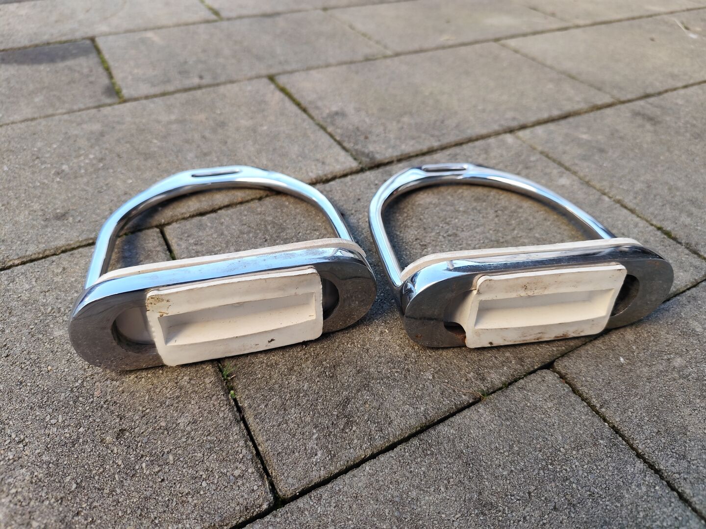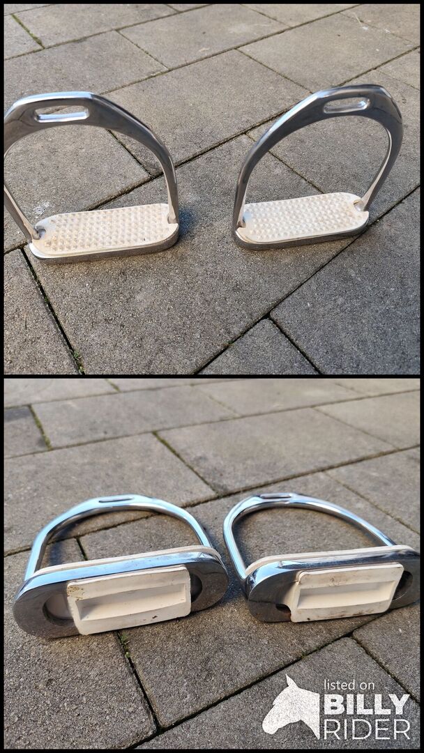 Steigbügel von Loesdau. Wir sind auf Sicherheitssteigbügel umgestiegen deshalb der Verkauf. Die Steigbügel wurden zwei Mal benutzt. Die Trittfläche ist 4cm tief und 12 cm lang.