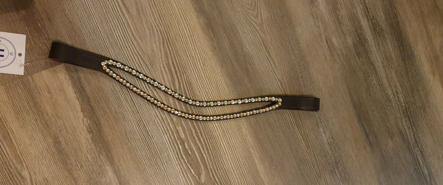 Ich verkaufe einen selbstgemachten wunderschönen doppelten Stirnriemen. Größe Pony /VB; Leder dunkelbraun. Habe ihn für meine Stute selbstgemacht, leider sitzt es etwas eng an ihrem Kopf. Fällt klein aus trotz VB-Größe. Die Glitzersteine sind aus Kunststoff Pfirsich (Rosé) und Silber (Kristall). Glitzert unglaublich schön bei Tageslicht!