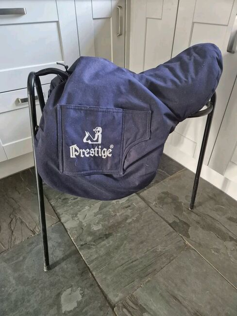 Im Verkauf inbegriffen: Original Prestige-Satteldecke. Bonus: Ein Paar nagelneue, unbenutzte Prestige Mono T-Bar Steigbügelriemen (Einzelhandelswert ca. £160).