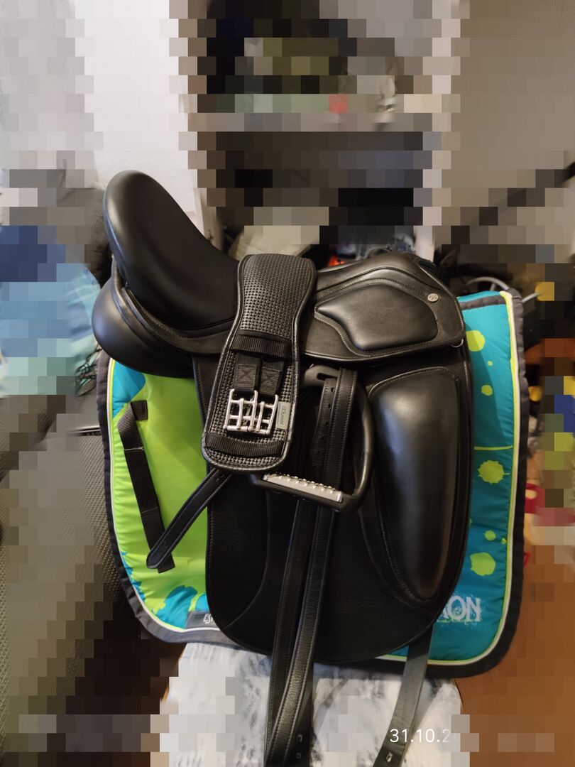 Dressursattel Claridge House Soft Top Bloc Monoblatt in Schwarz 17,5 Zoll aktuell ist ein lila kopfeisen drin 34 kw, Sattel ist neuwertig und worde wenig benutzt. Der Sattel ist super bequem hat aufgesetzte pauschen und super weiches Leder . NP 800€