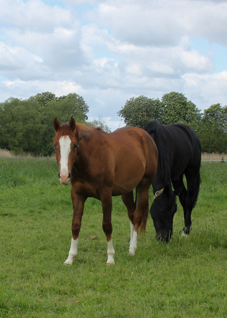 AQHA/APHA, gelding, * 2021, sorrel (Splashed White 1-Träger) 5 Panel-Test: alles negativ, bis auf HERDA (Er ist HERDA-Einzelgenträger, was für ihn selbst aber ja kein Problem darstellt.) Auf Wunsch kann er gerne in das EWU Jungpferdeprogramm einbezahlt werden.
