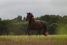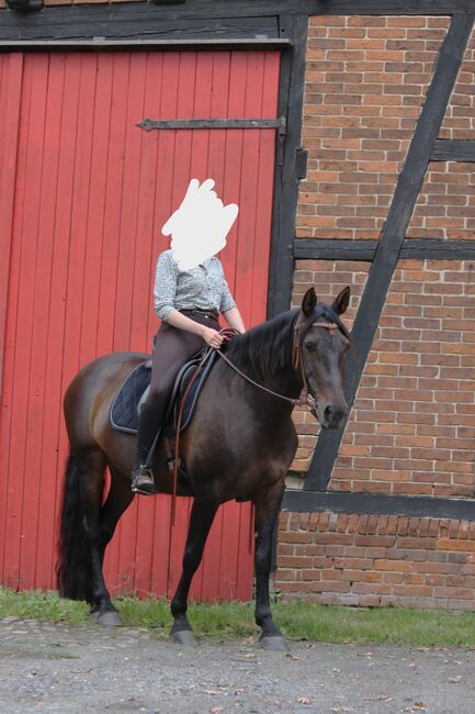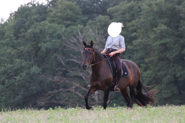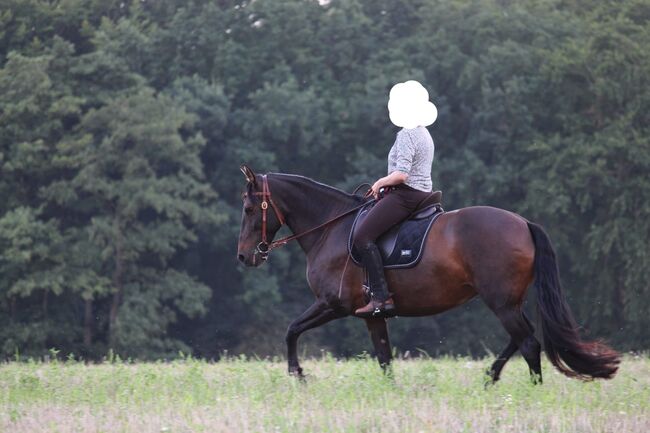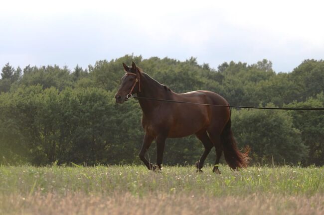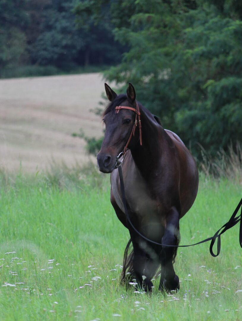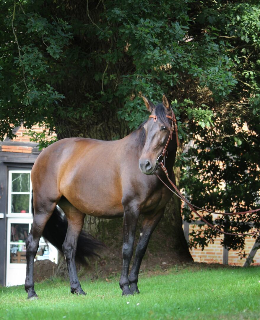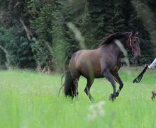 Zum Verkauf steht eine bildhübsche dunkelbraune Cruzado Stute mit einem Stockmaß von ca. 162 cm. Sie überzeugt durch ihr korrektes, kompaktes Gebäude, ihre gute Gesundheit und ihr angenehmes Wesen. Eine AKU aus dem Jahr 2024 liegt vor. Colina ist barhuf, regelmäßig entwurmt und geimpft und kennt sowohl Boxenhaltung mit Paddock als auch im Sommer 24-Stunden-Weide. Aufgrund von sehr reichhaltigem Heu ist die Stute aktuell etwas übergewichtig. Charakterlich ist sie ein echtes Herzenspferd: sehr lieb, menschenbezogen, freundlich und aufgeschlossen gegenüber Mensch und Pferd. Colina ist feinfühlig, intelligent, lernwillig und interessiert an neuen Aufgaben. Neue Inhalte nimmt sie schnell auf und arbeitet stets motiviert mit. Unter dem Sattel überzeugt sie durch sehr weiche und angenehme Grundgangarten. Die Stute wurde vielseitig gearbeitet und ist ein echtes Allroundtalent. Angeritten wurde sie im Westernstil und kennt bereits Brücke, Stangenarbeit, Sidepass und weitere Elemente. Aktuell wird sie in klassischer Reitweise weiter ausgebildet und lernt unter anderem Anlehnung, Schulterherein und Gangverstärkungen. Aufgrund ihres aktuellen Ausbildungsstandes ist sie noch nicht für Anfänger geeignet. Zwar lässt sie sich von unerfahrenen Reitern lenken, benötigt jedoch reiterliche Unterstützung bei Anlehnung und den Lektionen. Im Gelände zeigt sie sich in der Gruppe entspannt, alleine ist sie noch etwas wachsam. Sie passt ideal zu einer feinfühligen, ruhigen und reiterfahrenen Person, die Freude daran hat, sie weiter auszubilden und regelmäßig zu fördern. Mit ihrem liebevollen Wesen und ihrem großen Potenzial ist sie ein echtes Traumpferd und wartet auf ihren passenden Menschen.