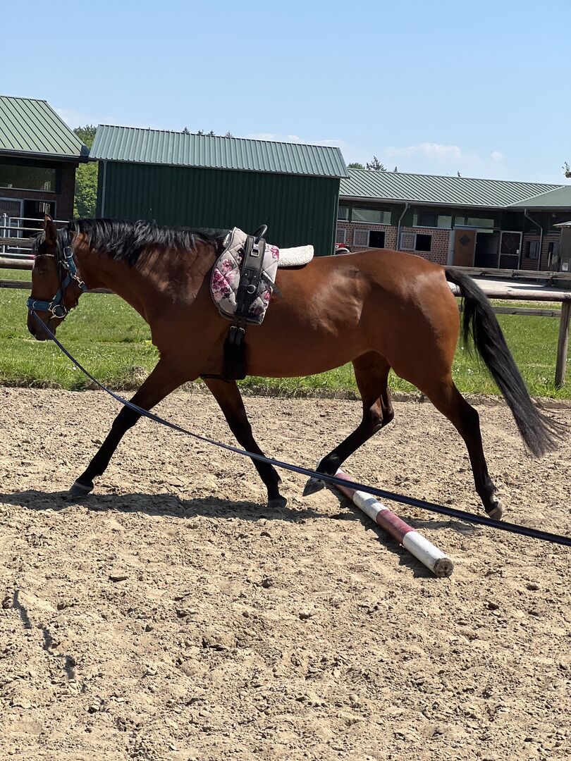 Sie bringt alles mit, was ein Sportpferd mit sich bringen kann und ist bereit, ein toller Partner auch im Tuniersport zu werden oder zum tüddeln als freizeitpartner. Einziges Manko: sie koppt. Sie hatte aber noch nie Probleme deshalb und war auch sonst immer Kern gesund. Impfungen wurden im im Januar aufgefrischt. AKU kann gegen volle Kostenübernahme selbstverständlich von einem Arzt ihrer Wahl durchgeführt werden. Charakterlich steht sie im Warmbluttyp. Ihr Maßsattel kann mit dazu erworben werden, sowie sämtliches Zubehör.