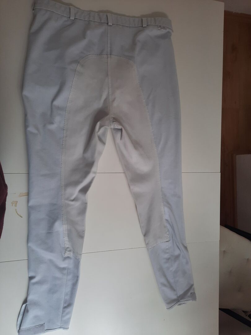 ich möchte gern diese weiße Reithose verkaufen. Sie ist mit 46 ausgezeichnet Bundweite ca. 44,5cm). Ist von der Marke Equilibre und verfügt über eine Reißverschlusstasche links und Klettabschlüssen. Sie wurde sie wenige als 10 Male getragen. Hat durch das waschen einen leichten Graustich. Der Besatz weißt leichtes Pilling sowie leichte verfäbung auf und zwei Ziernähte lösen sich leicht ab.