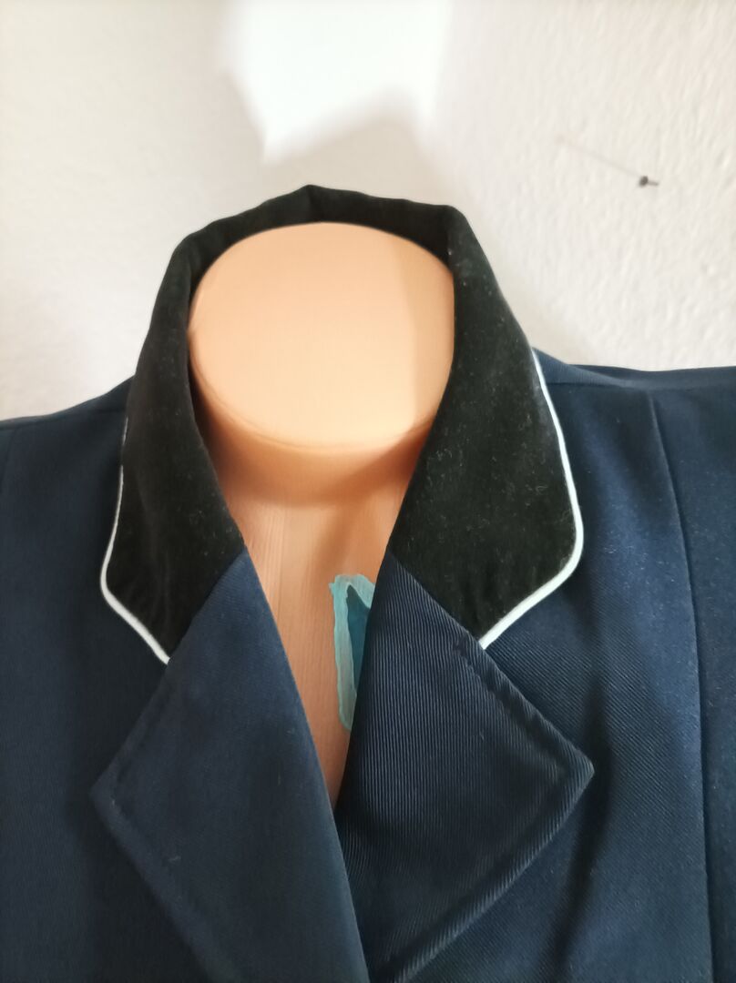 Turnierreitjacke Loesdau BLAU Damen mit Samtkragen. NEUWERTIG, nur 1 X getragen. Siehe detaillierte Fotos. Versicherter Versand DHL oder Hermes 5,49€ oder Abholung in Berlin.