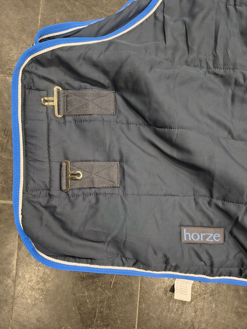 Ich verkaufe eine Unterdecke/Stalldecke von Horze in der Größe 145 cm und mit einer 100 Füllung, da ich sie nicht mehr benötige. Nächträglich habe ich den Klettverschluss vorne zum Zumachen verändern lassen (siehe Foto). die Decke war wenig in Benutzung, ist frisch gewaschen und weist keinerlei Mängel auf.