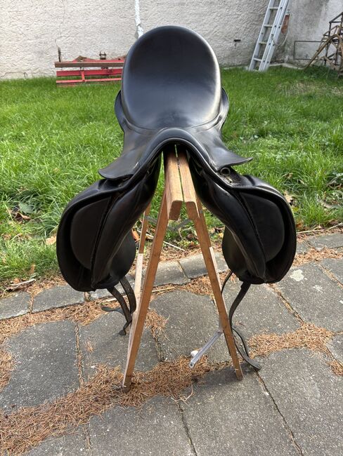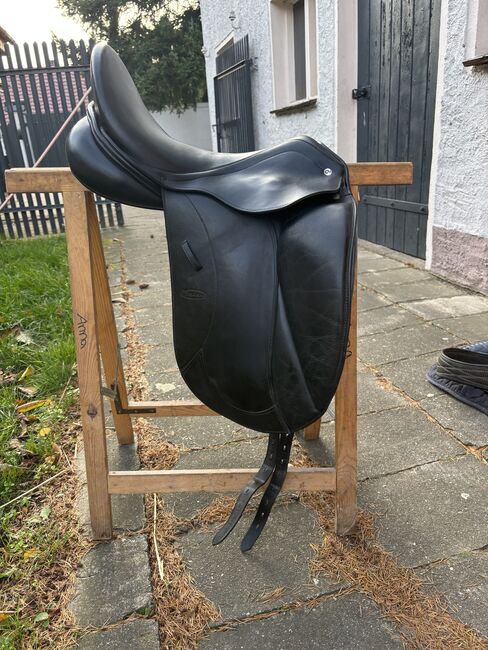 Bynamic Dressursattel, da er leider schon seit 1 Jahr ungenutzt in der Sattelkammer hängt. Er sitzt sich sehr bequem und durch die großen Pauschen hat man einen guten Halt. Ich habe ihn vor ein paar Jahren selbst gebraucht gekauft und seitdem nur sehr selten genutzt, da ich eigentlich Springreiterin bin und ihn gelegentlich zur Sitzkorrektur genutzt habe. Der Sattel wurde seit einem Jahr jetzt nun gar nicht mehr benutzt weshalb ich mich entschieden habe ihn zu verkaufen, da er zum rumhängen zu schade ist. Die Pauschen sind per Klett verstellbar. Maße sind den Bildern zu entnehmen. Ggf. auch mit Steigbügeln, Steigbügelriemen, diversen Schabracken ( Eskadron ) und Kurzgurt zu verkaufen. Macht mir einfach einen Preisvorschlag.