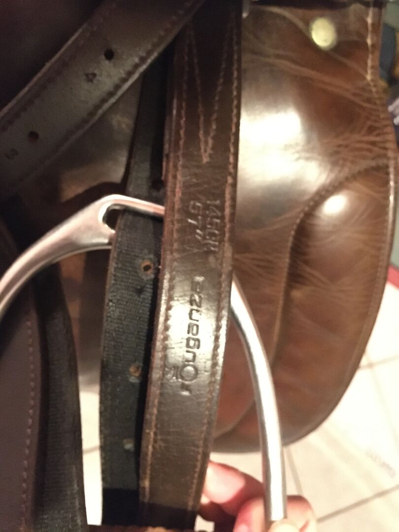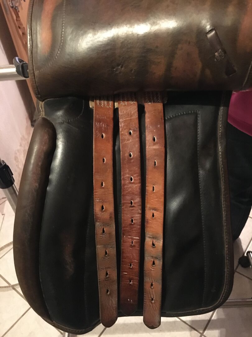 Der Hilfs-/Aufsteigriemen ist neu, Marke: Krämer, Farbe dunkel braun Die Steigbügelriemen sind neu, Marke: Fouganza, Länge: 145, Farbe dunkel braun Ein Sattelgurt kann gegen einen kleinen Aufpreis hinzugefügt werden ( Marke Fouganza, Länge 125cm, Farbe schwarz, Zustand neu)